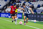 Guadalupe, Nuevo León, 31 de octubre de 2025. Karol Bernal (I), durante el partido correspondiente a la jornada 17 del torneo Apertura 2025 de la Liga BBVA MX Femenil, entre las Rayadas del Monterrey y las Rojinegras del Atlas, realizado en el estadio BBVA. Foto: Imago7/Nora Guerrero