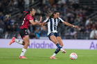 Guadalupe, Nuevo León, 31 de octubre de 2025. Kayla Fernandez, durante el partido correspondiente a la jornada 17 del torneo Apertura 2025 de la Liga BBVA MX Femenil, entre las Rayadas del Monterrey y las Rojinegras del Atlas, realizado en el estadio BBVA. Foto: Imago7/David Arzamendi