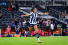 Guadalupe, Nuevo León, 31 de octubre de 2025. Christina Burkenroad anota gol, durante el partido correspondiente a la jornada 17 del torneo Apertura 2025 de la Liga BBVA MX Femenil, entre las Rayadas del Monterrey y las Rojinegras del Atlas, realizado en el estadio BBVA. Foto: Imago7/ Andrea Jiménez
