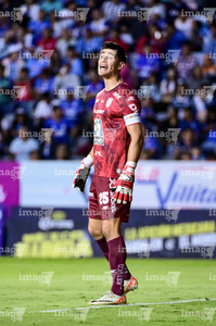 Pachuca, Hidalgo, 13 de septiembre de 2025. Carlos Moreno en reclamo, durante el partido correspondiente a la jornada 8 del torneo Apertura 2025 de la Liga BBVA MX, entre los Tuzos del Pachuca y la Máquina Celeste del Cruz Azul, realizado en el estadio Hidalgo. Foto: Imago7/ Alexis Chavez