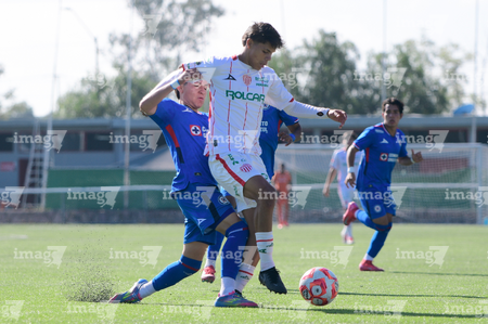 Aguascalientes, Aguascalientes, 24 de septiembre de 2025. Franco Orquiz, durante el partido correspondiente a la jornada 9 del torneo Apertura 2025 de la Liga BBVA MX categoría Sub17, entre los Rayos del Necaxa y la Máquina Celeste del Cruz Azul, realizado en la Casa Club del Necaxa. Foto: Imago7/ Pablo Ramirez