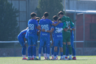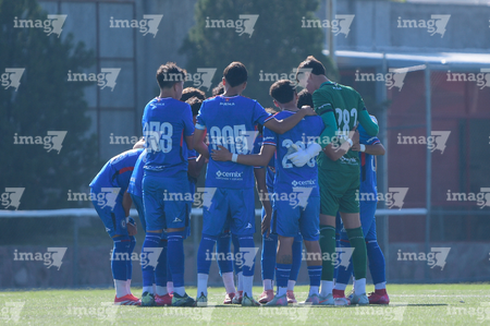 Aguascalientes, Aguascalientes, 24 de septiembre de 2025. Jugadores de Cruz Azul Sub17, durante el partido correspondiente a la jornada 9 del torneo Apertura 2025 de la Liga BBVA MX categoría Sub17, entre los Rayos del Necaxa y la Máquina Celeste del Cruz Azul, realizado en la Casa Club del Necaxa. Foto: Imago7/ Pablo Ramirez