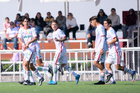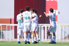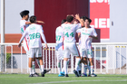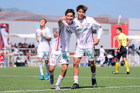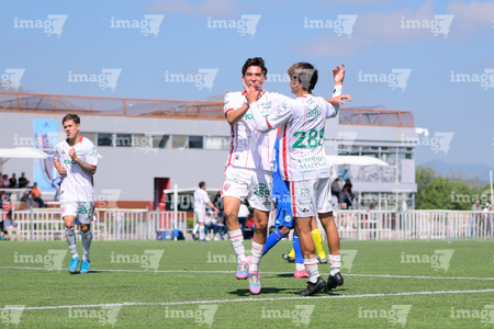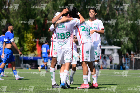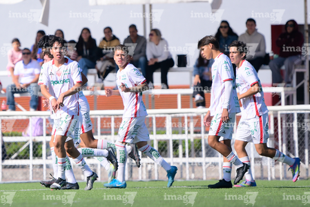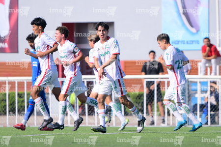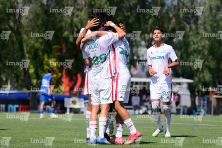 Aguascalientes, Aguascalientes, 24 de septiembre de 2025. Jugadores de Necaxa Sub17 en festejo de gol, durante el partido correspondiente a la jornada 9 del torneo Apertura 2025 de la Liga BBVA MX categoría Sub17, entre los Rayos del Necaxa y la Máquina Celeste del Cruz Azul, realizado en la Casa Club del Necaxa. Foto: Imago7/ Pablo Ramirez