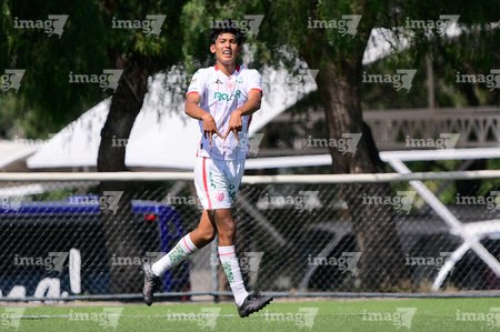 Aguascalientes, Aguascalientes, 24 de septiembre de 2025. Jozef Aburto en festejo de gol, durante el partido correspondiente a la jornada 9 del torneo Apertura 2025 de la Liga BBVA MX categoría Sub17, entre los Rayos del Necaxa y la Máquina Celeste del Cruz Azul, realizado en la Casa Club del Necaxa. Foto: Imago7/ Pablo Ramirez