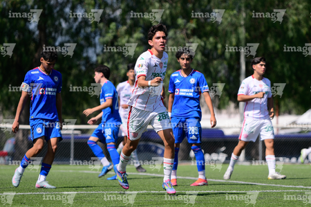 Aguascalientes, Aguascalientes, 24 de septiembre de 2025. Nicolás Amozurrutia, durante el partido correspondiente a la jornada 9 del torneo Apertura 2025 de la Liga BBVA MX categoría Sub17, entre los Rayos del Necaxa y la Máquina Celeste del Cruz Azul, realizado en la Casa Club del Necaxa. Foto: Imago7/ Pablo Ramirez