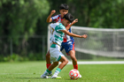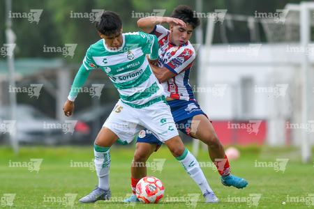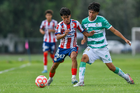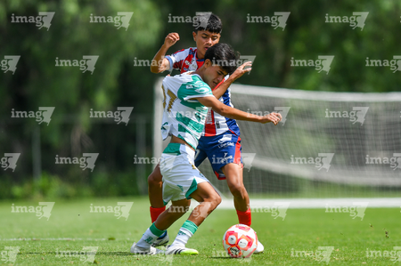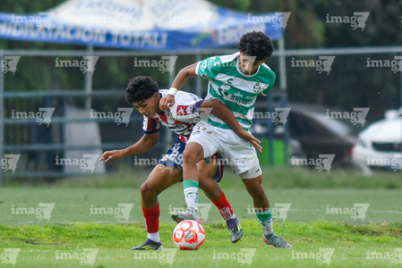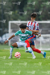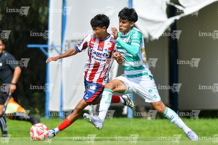 San Luis Potosí, San Luis Potosí, 20 de septiembre de 2025. Maddox Montalvo (I), durante el partido correspondiente a la jornada 11 del torneo Apertura 2025 de la Liga BBVA MX categoría Sub17, entre el Atlético San Luis y los Guerreros de Santos Laguna, realizado en La Presa. Foto: Imago7/ Olimpia Puga