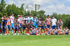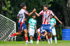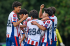 San Luis Potosí, San Luis Potosí, 20 de septiembre de 2025. Jugadores de Atlético San Luis en festejo, durante el partido correspondiente a la jornada 11 del torneo Apertura 2025 de la Liga BBVA MX categoría Sub17, entre el Atlético San Luis y los Guerreros de Santos Laguna, realizado en La Presa. Foto: Imago7/ Olimpia Puga