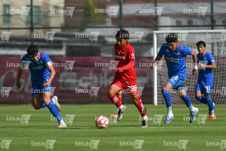 Metepec, Estado de México, 20 de agosto de 2025. Jose Villanueva, durante el partido correspondiente a la jornada 11 del torneo Apertura 2025 de la Liga BBVA MX categoría Sub17, entre los Diablos Rojos del Toluca y la Máquina Celeste del Cruz Azul, realizado en las instalaciones de Metepec. Foto: Imago7/
