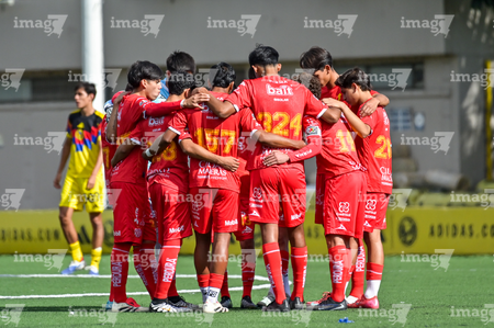 Ciudad de México, 20 de septiembre de 2025. Jugadores de Necaxa, durante el partido correspondiente a la jornada 11 del torneo Apertura 2025 de la Liga BBVA MX categoría Sub17, entre las Águilas del América y los Rayos del Necaxa, realizado en Coapa. Foto: Imago7/ Mauricio Ruiz
