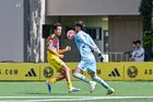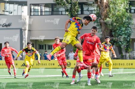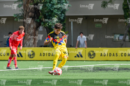 Ciudad de México, 20 de septiembre de 2025. Kevin Hernández, durante el partido correspondiente a la jornada 11 del torneo Apertura 2025 de la Liga BBVA MX categoría Sub17, entre las Águilas del América y los Rayos del Necaxa, realizado en Coapa. Foto: Imago7/ Mauricio Ruiz