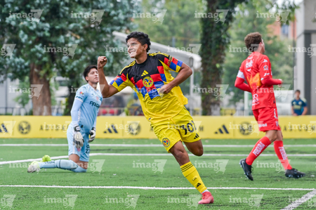 Ciudad de México, 20 de septiembre de 2025. Mateo Luna en festejo, durante el partido correspondiente a la jornada 11 del torneo Apertura 2025 de la Liga BBVA MX categoría Sub17, entre las Águilas del América y los Rayos del Necaxa, realizado en Coapa. Foto: Imago7/ Mauricio Ruiz