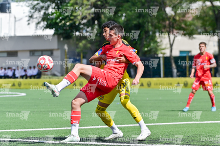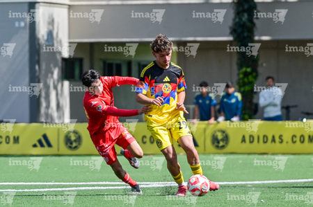Ciudad de México, 20 de septiembre de 2025. Mateo Luna, durante el partido correspondiente a la jornada 11 del torneo Apertura 2025 de la Liga BBVA MX categoría Sub17, entre las Águilas del América y los Rayos del Necaxa, realizado en Coapa. Foto: Imago7/ Mauricio Ruiz