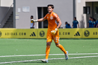 Ciudad de México, 20 de septiembre de 2025. Juan Rangel en festejo de gol, durante el partido correspondiente a la jornada 11 del torneo Apertura 2025 de la Liga BBVA MX categoría Sub17, entre las Águilas del América y los Rayos del Necaxa, realizado en Coapa. Foto: Imago7/ Mauricio Ruiz