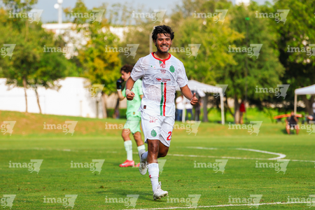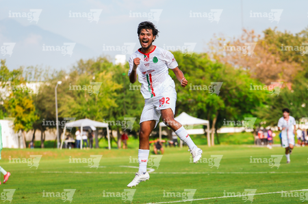 Santiago, Nuevo León, 27 de septiembre de 2025. Stefan López en festejo de gol, durante el partido correspondiente a la jornada 12 del torneo Apertura 2025 de la Liga BBVA MX categoría Sub17, entre los Rayados del Monterrey y las Chivas Rayadas del Guadalajara, realizado en El Barrial. Foto: Imago7/ David Arzamendi