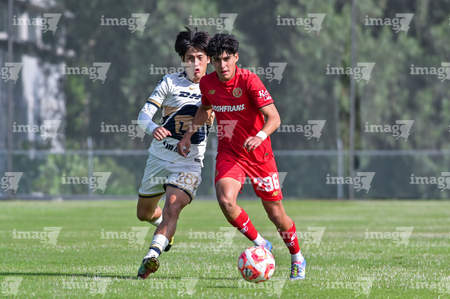 Ciudad de México, 27 de septiembre de 2025. , durante el partido correspondiente a la jornada 12 del torneo Apertura 2025 de la Liga BBVA MX categoría Sub17, entre los Pumas de la UNAM y los Diablos Rojos del Toluca, realizado en Cantera. Foto: Imago7/