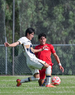 Ciudad de México, 27 de septiembre de 2025. Anthony Verdi y Nicolás Lugo, durante el partido correspondiente a la jornada 12 del torneo Apertura 2025 de la Liga BBVA MX categoría Sub17, entre los Pumas de la UNAM y los Diablos Rojos del Toluca, realizado en Cantera. Foto: Imago7/