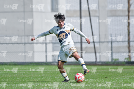 Ciudad de México, 27 de septiembre de 2025. Emmanuel Guadalupe Ramirez, durante el partido correspondiente a la jornada 12 del torneo Apertura 2025 de la Liga BBVA MX categoría Sub17, entre los Pumas de la UNAM y los Diablos Rojos del Toluca, realizado en Cantera. Foto: Imago7/