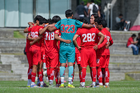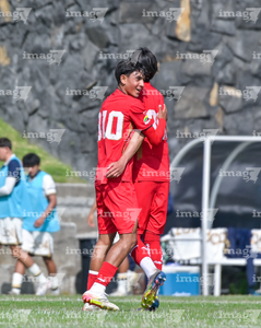 Ciudad de México, 27 de septiembre de 2025. Jugadores de Toluca en festejo, durante el partido correspondiente a la jornada 12 del torneo Apertura 2025 de la Liga BBVA MX categoría Sub17, entre los Pumas de la UNAM y los Diablos Rojos del Toluca, realizado en Cantera. Foto: Imago7/