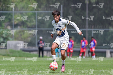 Ciudad de México, 27 de septiembre de 2025. Roberto Hernández, durante el partido correspondiente a la jornada 12 del torneo Apertura 2025 de la Liga BBVA MX categoría Sub17, entre los Pumas de la UNAM y los Diablos Rojos del Toluca, realizado en Cantera. Foto: Imago7/