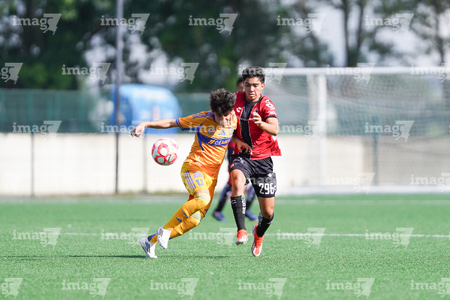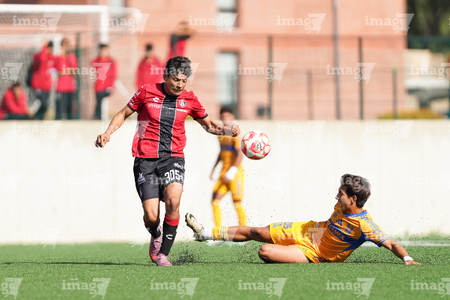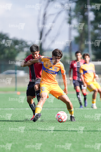 Guadalajara, Jalisco, 27 de septiembre de 2025. Noe Mota, durante el partido correspondiente a la jornada 12 del torneo Apertura 2025 de la Liga BBVA MX categoría Sub17, entre los Rojinegros del Atlas y los Tigres de la UANL, realizado en la Academia AGA. Foto: Imago7/ Andres Sepulveda