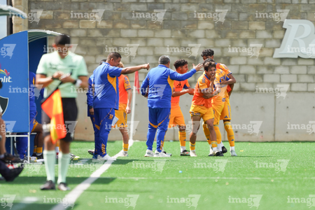 Guadalajara, Jalisco, 27 de septiembre de 2025. Jugadores de Tigres en festejo de gol, durante el partido correspondiente a la jornada 12 del torneo Apertura 2025 de la Liga BBVA MX categoría Sub17, entre los Rojinegros del Atlas y los Tigres de la UANL, realizado en la Academia AGA. Foto: Imago7/ Andres Sepulveda