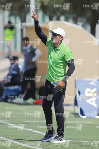 Torreón, Coahuila, 4 de octubre de 2025. Jorge Campos, director técnico, durante el partido correspondiente a la jornada 13 del torneo Apertura 2025 de la Liga BBVA MX categoría Sub17, entre los Guerreros de Santos Laguna y los Esmeraldas de León, realizado en el TSM. Foto: Imago7/ Saul Perales
