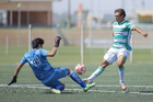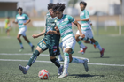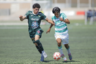 Torreón, Coahuila, 4 de octubre de 2025. Jesús López Aguilar (D), durante el partido correspondiente a la jornada 13 del torneo Apertura 2025 de la Liga BBVA MX categoría Sub17, entre los Guerreros de Santos Laguna y los Esmeraldas de León, realizado en el TSM. Foto: Imago7/ Saul Perales