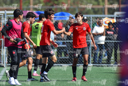 Tijuana, Baja California, 4 de octubre de 2025. Jugadores de Xolos, durante el partido correspondiente a la jornada 13 del torneo Apertura 2025 de la Liga BBVA MX categoría Sub17, entre los Xolos de Tijuana y los Rayados de Monterrey, realizado en el Centro de Iniciación Xoloitzcuintle. Foto: Imago7/ David Vega