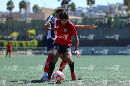 Tijuana, Baja California, 4 de octubre de 2025. José Mendoza (I), durante el partido correspondiente a la jornada 13 del torneo Apertura 2025 de la Liga BBVA MX categoría Sub17, entre los Xolos de Tijuana y los Rayados de Monterrey, realizado en el Centro de Iniciación Xoloitzcuintle. Foto: Imago7/ David Vega