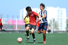 Tijuana, Baja California, 4 de octubre de 2025. Gael Calvo (I), durante el partido correspondiente a la jornada 13 del torneo Apertura 2025 de la Liga BBVA MX categoría Sub17, entre los Xolos de Tijuana y los Rayados de Monterrey, realizado en el Centro de Iniciación Xoloitzcuintle. Foto: Imago7/ David Vega