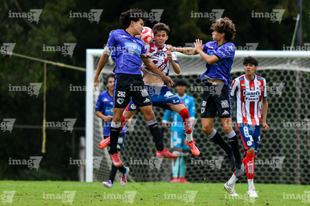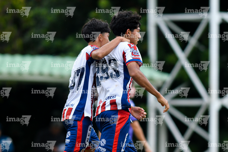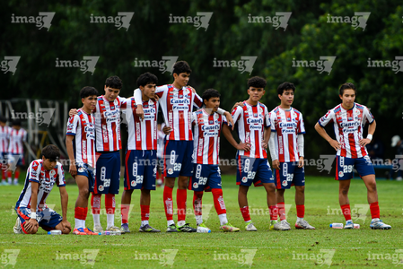 San Luis Potosí, San Luis Potosí, 11 de octubre de 2025. Jugadores de Atlético San Luis Sub17, durante el partido correspondiente a la jornada 14 del torneo Apertura 2025 de la Liga BBVA MX, entre el Atlético San Luis y los Cañoneros de Mazatlán, realizado en La Presa. Foto: Imago7/ Olimpia Puga