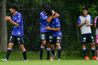 San Luis Potosí, San Luis Potosí, 11 de octubre de 2025. Jugadores de Atlético San Luis Sub17 en festejo de gol, durante el partido correspondiente a la jornada 14 del torneo Apertura 2025 de la Liga BBVA MX, entre el Atlético San Luis y los Cañoneros de Mazatlán, realizado en La Presa. Foto: Imago7/ Olimpia Puga