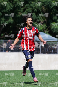 Zapopan, Jalisco, 11 de octubre de 2025. Edgar Vargas en festejo de gol, durante el partido correspondiente a la jornada 14 del torneo Apertura 2025 de la Liga BBVA MX categoría Sub17, entre las Chivas Rayadas del Guadalajara y los Xolos de Tijuana, realizado en Verde Valle. Foto: Imago7/ Hugo Ramirez