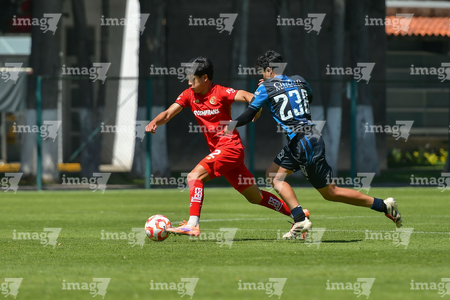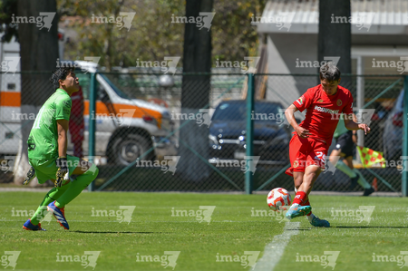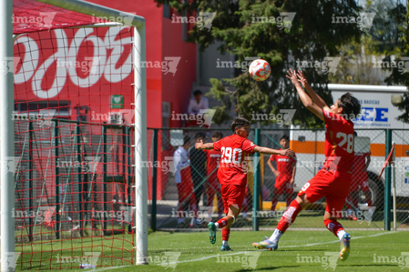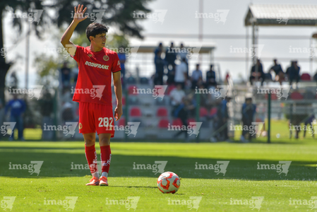 Metepec, Estado de México, 25 de octubre de 2025. , durante el partido correspondiente a la jornada 16 del torneo Apertura 2025 de la Liga BBVA MX categoría Sub17, entre los Diablos Rojos del Toluca y los Gallos Blancos del Querétaro, realizado en las instalaciones de Metepec. Foto: Imago7 / Arturo Hernandez