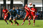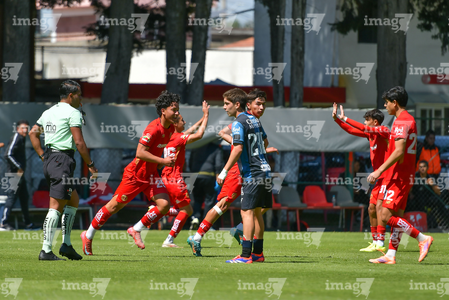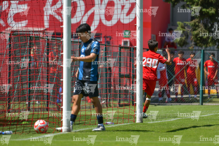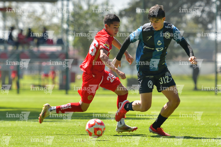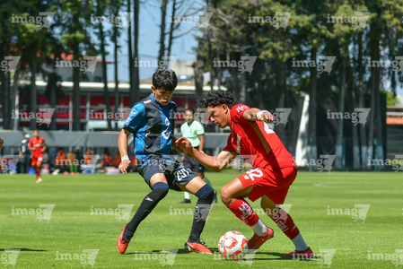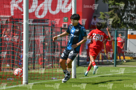 Metepec, Estado de México, 25 de octubre de 2025. , durante el partido correspondiente a la jornada 16 del torneo Apertura 2025 de la Liga BBVA MX categoría Sub17, entre los Diablos Rojos del Toluca y los Gallos Blancos del Querétaro, realizado en las instalaciones de Metepec. Foto: Imago7/