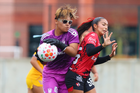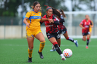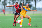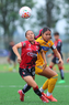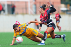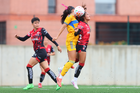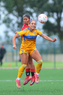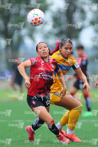 Guadalajara, Jalisco, 25 de septiembre de 2025. Fernanda Casillas (I) y Ángeles Sánchez (D), durante el partido correspondiente a la jornada 12 del torneo Apertura 2025 de la Liga BBVA MX Femenil categoría Sub19, entre las Rojinegras del Atlas y las Tigres de la UANL, realizado en la Academia AGA. Foto: Imago7/ Juan Carlos Cubeyro.
