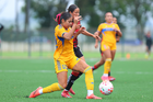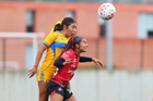 Guadalajara, Jalisco, 25 de septiembre de 2025. Daniela Sánchez (I) y Noemí Villalobos (D), durante el partido correspondiente a la jornada 12 del torneo Apertura 2025 de la Liga BBVA MX Femenil categoría Sub19, entre las Rojinegras del Atlas y las Tigres de la UANL, realizado en la Academia AGA. Foto: Imago7/ Juan Carlos Cubeyro.