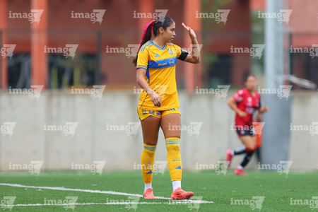 Guadalajara, Jalisco, 25 de septiembre de 2025. Alexia Gutiérrez, durante el partido correspondiente a la jornada 12 del torneo Apertura 2025 de la Liga BBVA MX Femenil categoría Sub19, entre las Rojinegras del Atlas y las Tigres de la UANL, realizado en la Academia AGA. Foto: Imago7/ Juan Carlos Cubeyro.