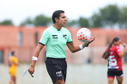 Guadalajara, Jalisco, 25 de septiembre de 2025. César Aguiñiga, Árbitro Central, durante el partido correspondiente a la jornada 12 del torneo Apertura 2025 de la Liga BBVA MX Femenil categoría Sub19, entre las Rojinegras del Atlas y las Tigres de la UANL, realizado en la Academia AGA. Foto: Imago7/ Juan Carlos Cubeyro.