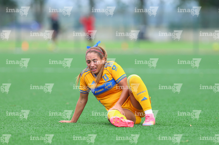 Guadalajara, Jalisco, 25 de septiembre de 2025. Ángeles Sánchez resultó lesionada, durante el partido correspondiente a la jornada 12 del torneo Apertura 2025 de la Liga BBVA MX Femenil categoría Sub19, entre las Rojinegras del Atlas y las Tigres de la UANL, realizado en la Academia AGA. Foto: Imago7/ Juan Carlos Cubeyro.