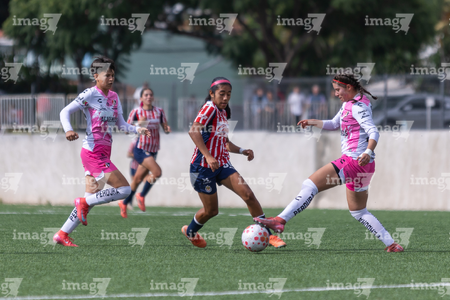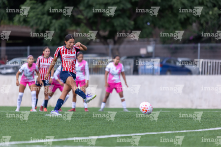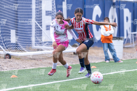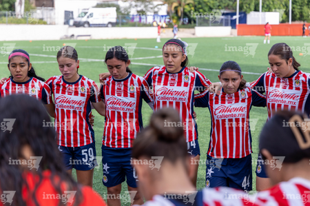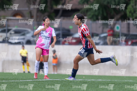Guadalajara, Jalisco, 5 de octubre de 2025. , durante el partido correspondiente a la jornada 13 del torneo Apertura 2025 de la Liga BBVA MX Femenil categoría Sub19, entre las Chivas Rayadas del Guadalajara y las Rojinegras del Atlas, realizado en Verde Valle. Foto: Imago7/ Jair Terán