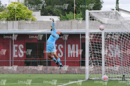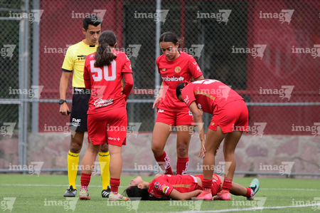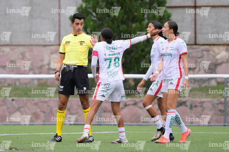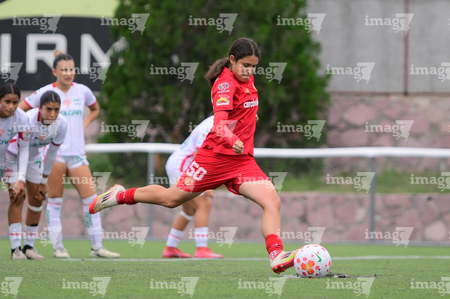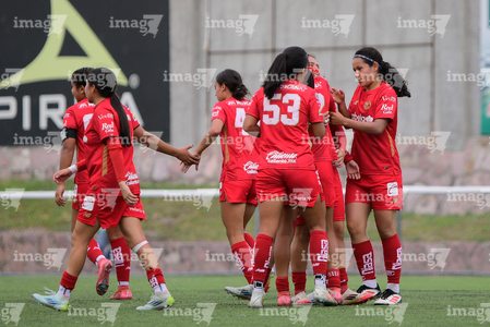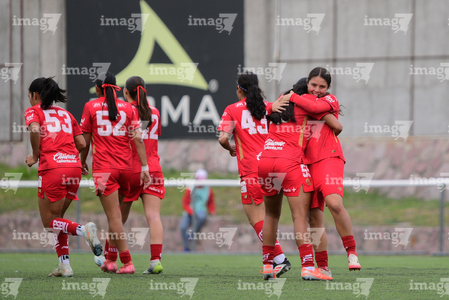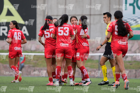 Aguascalientes, Aguascalientes, 11 de octubre de 2025. , durante el partido correspondiente a la jornada 14 del torneo Apertura 2025 de la Liga BBVA MX Femenil categoría Sub19, entre las Centellas del Necaxa y las Diablas Rojas del Toluca, realizado en la Casa Club del Necaxa. Foto: Imago7/ Pablo Ramirez