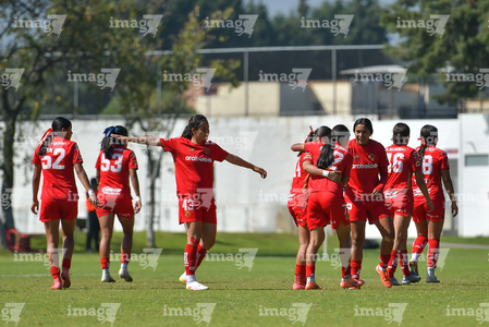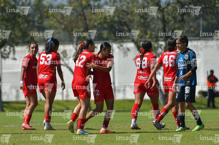 Toluca, Estado de México, 25 de octubre de 2025. , durante el partido correspondiente a la jornada 16 del torneo Apertura 2025 de la Liga BBVA MX Femenil categoría Sub19, entre las Diablas Rojas del Toluca y el Club Querétaro, realizado en las instalaciones de Metepec. Foto: Imago7/ Arturo Hernandez