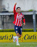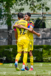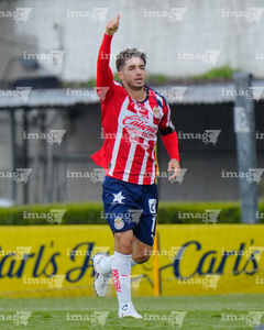 Ciudad de México, 12 de septiembre de 2025. Isaác Brizuela en festejo de gol, durante el partido correspondiente a la jornada 8 del torneo Apertura 2025 de la Liga BBVA MX categoría Sub21, entre las Águilas del América y las Chivas Rayadas del Guadalajara, realizado en Coapa. Foto: Imago7/Diego Padilla
