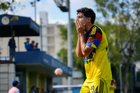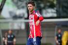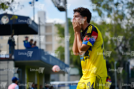 Ciudad de México, 12 de septiembre de 2025. César Ayón en lamento, durante el partido correspondiente a la jornada 8 del torneo Apertura 2025 de la Liga BBVA MX categoría Sub21, entre las Águilas del América y las Chivas Rayadas del Guadalajara, realizado en Coapa. Foto: Imago7/Diego Padilla