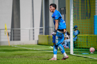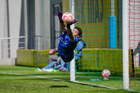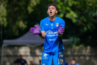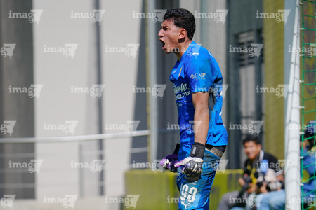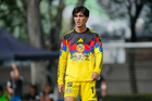 Ciudad de México, 12 de septiembre de 2025. Ángel Romero ataja penal, durante el partido correspondiente a la jornada 8 del torneo Apertura 2025 de la Liga BBVA MX categoría Sub21, entre las Águilas del América y las Chivas Rayadas del Guadalajara, realizado en Coapa. Foto: Imago7/Diego Padilla