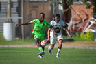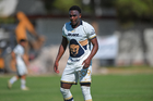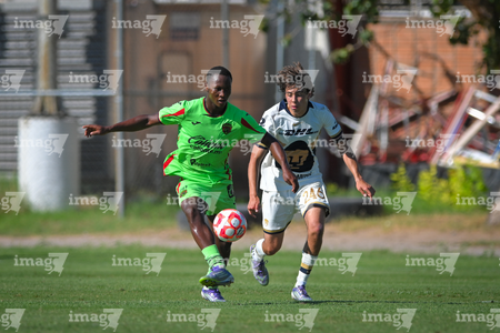 Ciudad Juárez, Chihuahua, 23 de septiembre de 2025. Fred Leventis y Stanley García, durante el partido correspondiente a la jornada 10 del torneo Apertura 2025 de la Liga BBVA MX categoría Sub21, entre los Bravos de FC Juárez y los Pumas de la UNAM, realizado en realizado en el Instituto Tecnológico de Ciudad Juárez. Foto: Imago7/ José Zamora