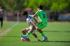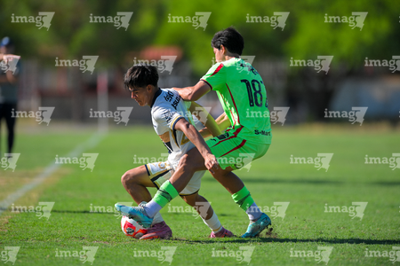Ciudad Juárez, Chihuahua, 23 de septiembre de 2025. Norberto Jimenez y Yerevan Barron, durante el partido correspondiente a la jornada 10 del torneo Apertura 2025 de la Liga BBVA MX categoría Sub21, entre los Bravos de FC Juárez y los Pumas de la UNAM, realizado en realizado en el Instituto Tecnológico de Ciudad Juárez. Foto: Imago7/ José Zamora