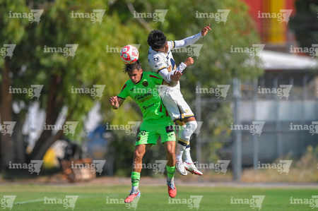 Ciudad Juárez, Chihuahua, 23 de septiembre de 2025. José Mancilla y Daniel Gonzalez, durante el partido correspondiente a la jornada 10 del torneo Apertura 2025 de la Liga BBVA MX categoría Sub21, entre los Bravos de FC Juárez y los Pumas de la UNAM, realizado en realizado en el Instituto Tecnológico de Ciudad Juárez. Foto: Imago7/ José Zamora