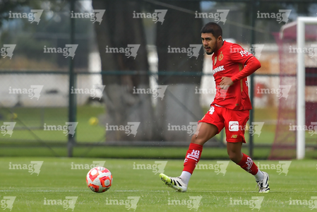 Metepec, Estado de México, 24 de septiembre de 2025. Juan Estrada , durante el partido correspondiente a la jornada 10 del torneo Apertura 2025 de la Liga BBVA MX categoría Sub21, entre los Diablos Rojos del Toluca y los Rayados del Monterrey, realizado en las instalaciones de Metepec. Foto: Imago7 /Arturo Hernandez